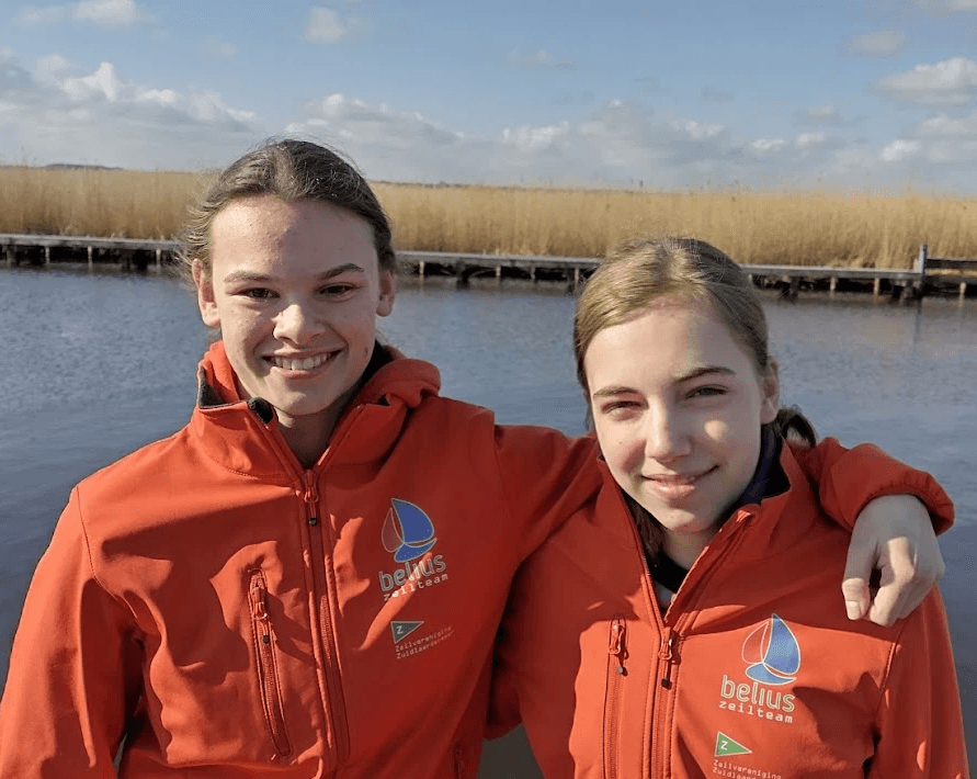 Wij zijn Annemé en Elise. We gaan samen in de FJ varen. Daarnaast varen we individueel ook en de Splash. In beide klassen zullen we deelnemen aan wedstrijden.